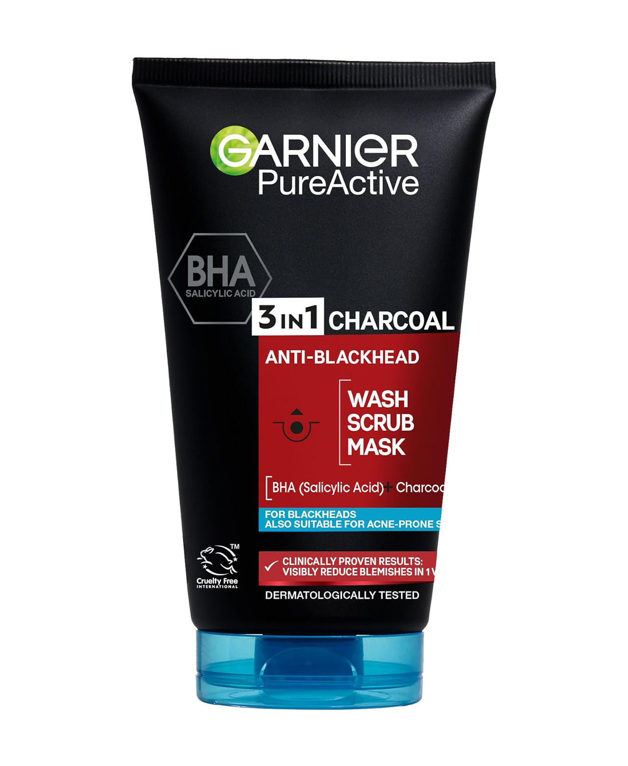 • GARNIER PURE ACTIVE 3IN1 CHARCOAL: Use as a daily wash, scrub, or mask to visibly reduce blackheads in 2 weeks